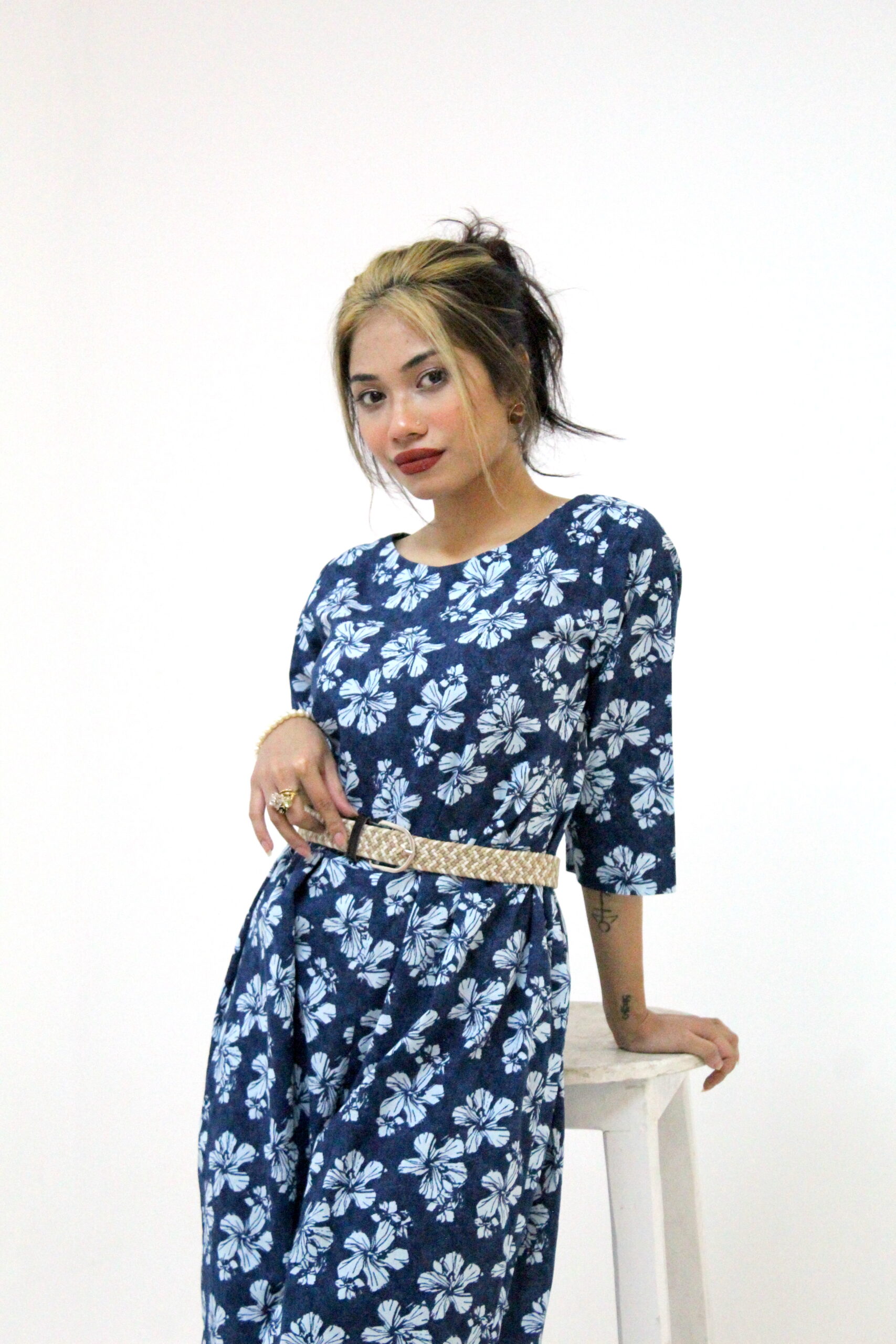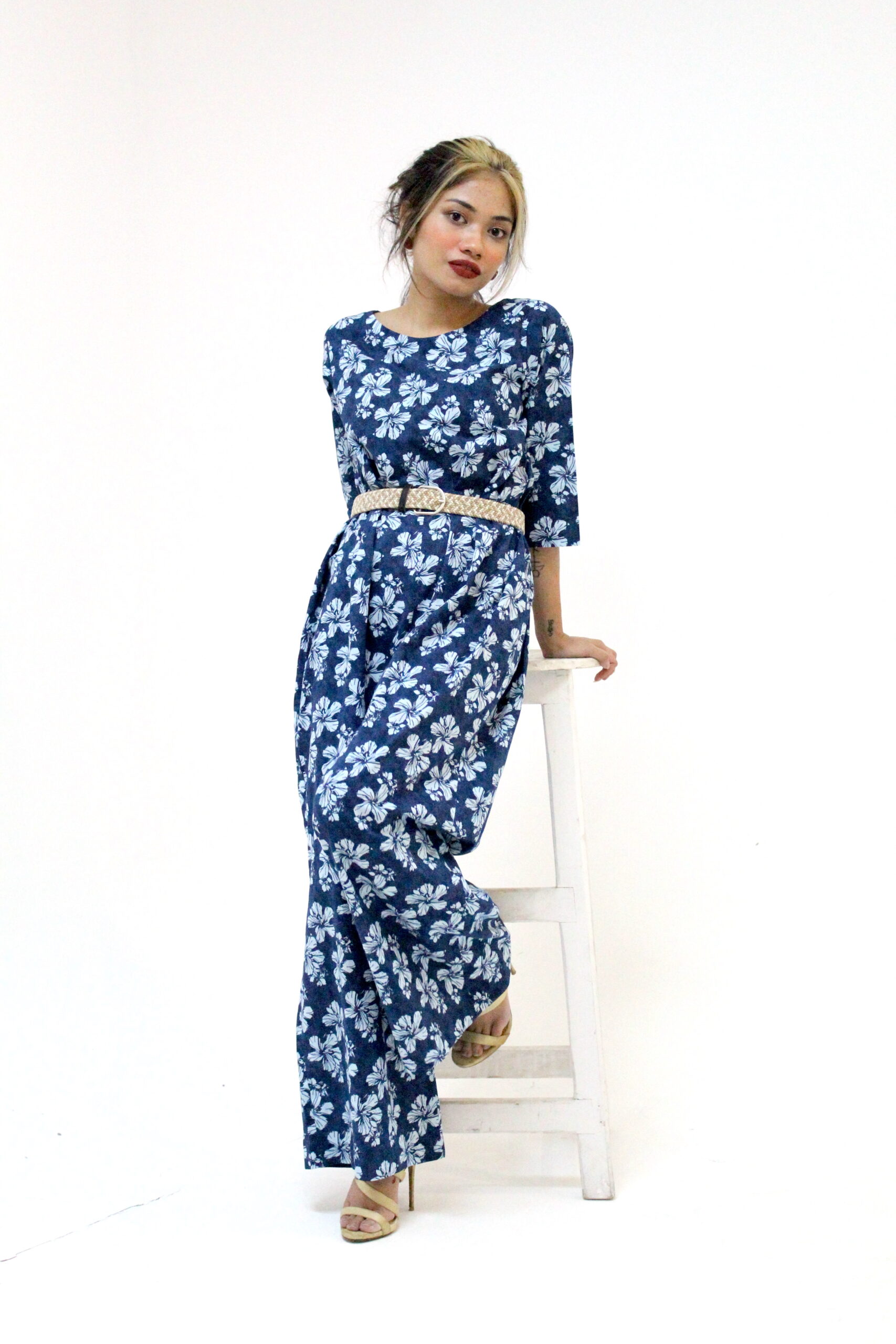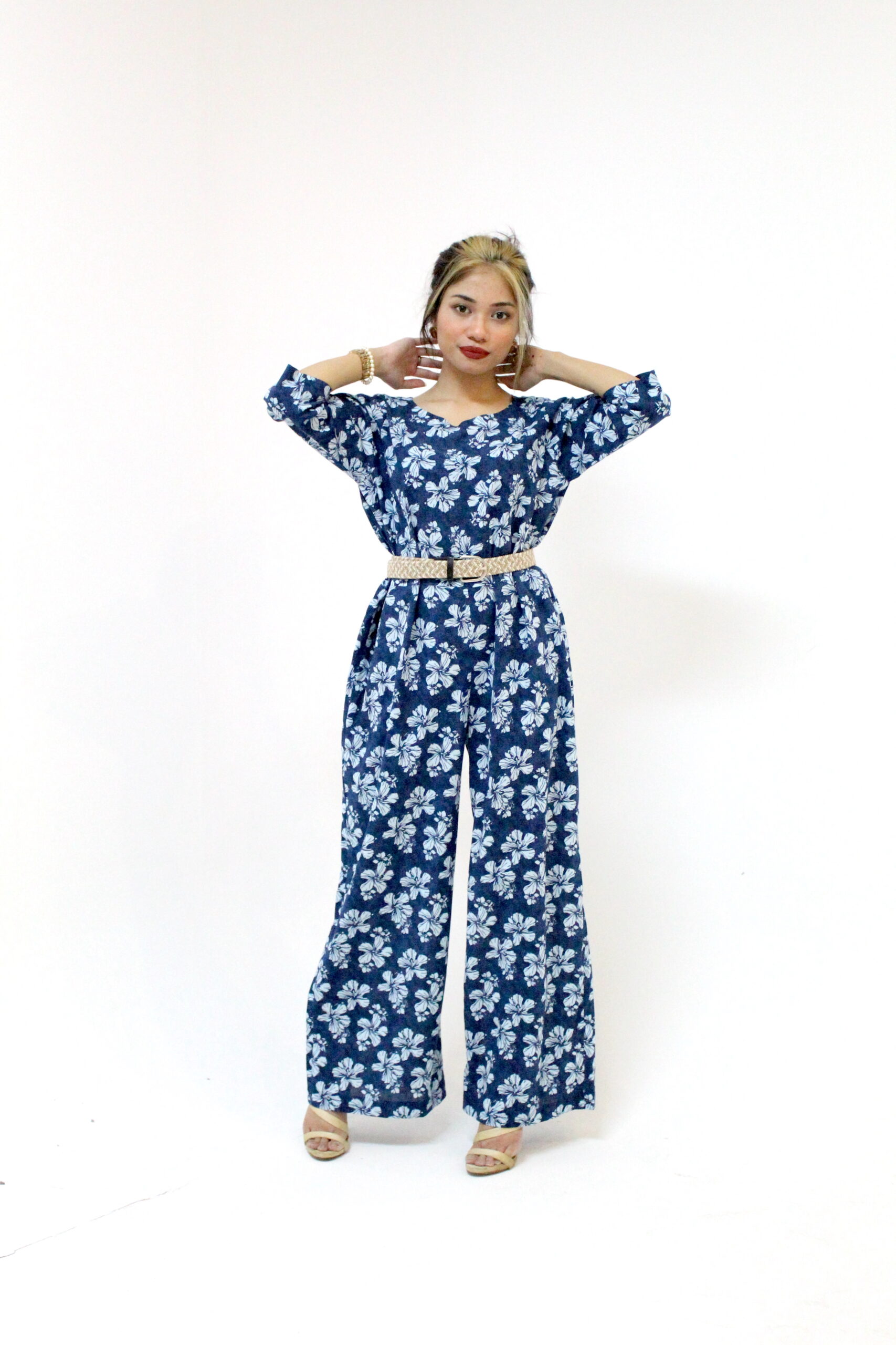 • Design: A charming jumpsuit adorned with a delicate blue floral print, offering a refreshing and feminine touch.